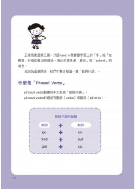 英文有相當多的用法是加上一個介系詞或副詞,整個片語或整句話的意思就會變得不同,可以延伸出許多意義。以往總是不明白誰該跟誰搭在一起,現在用文字搭配「進階圖解」說明這些有延伸意義的文法,看一眼就懂!