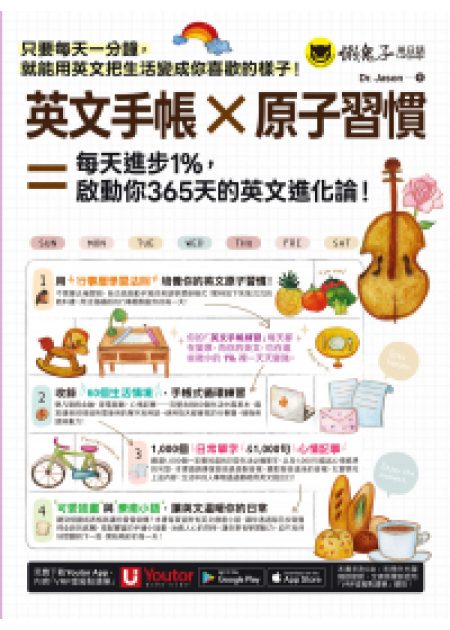 本次受到懶鬼子英日語邀請,將《我的第一本英文行事曆【虛擬點讀筆版】》改版為《英文手帳 × 原子習慣 = 每天進步1%,啟動你365天的英文進化論!》,這是一本將我的教學想法與實踐累積而成的書,搭配最近正夯的原子習慣概念,只要每天跨出一小步,就可以在往後取得大大的果實。在書中,我將最貼近日常生活的英文內容,整理為三個書寫方向:用英文記錄數字與單位、用英文寫下生活中的人、事、物,以及用英文表達每天的心情與感想。透過單字、例句與延伸補充,讓你在書寫的同時,自然熟悉這些英文表達,並慢慢建立屬於自己的語感。希望不論是在通勤途中、休息片刻,或是睡前翻開手帳時,你都能輕鬆地和英文相處一會兒。