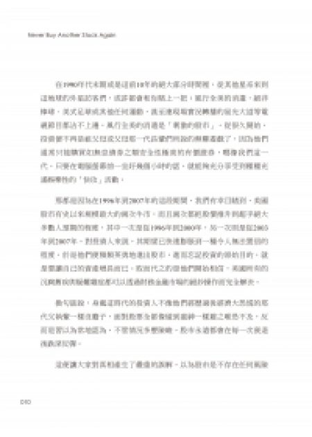 然而,世人往往容易遺忘慘痛的教訓。在股市歷經二十年的大多頭後,無數新手受不了誘惑而投身其中,卻在二十一世紀初的科技股崩盤與隨後的金融海嘯中,親眼看著資產毀於一旦。遺憾的是,人總是健忘的,災難過後不久,大眾又開始瘋狂追逐股票,卻在恐懼與貪婪之間反覆掙扎,搞不懂究竟該勇往直前,還是該把錢塞回床底。