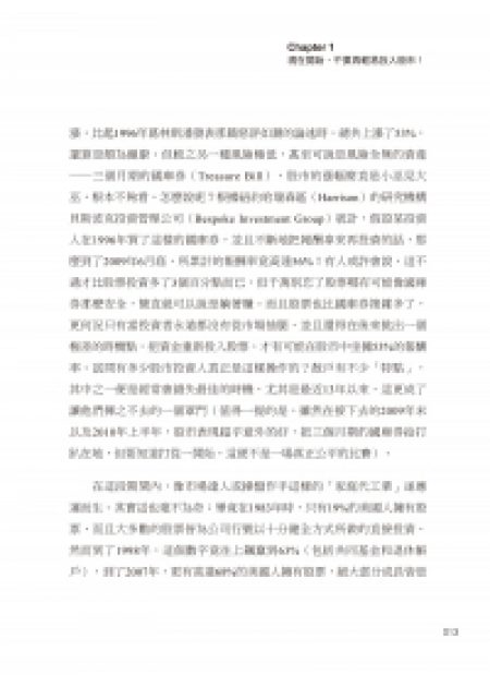 真正的致富公式,是學會讓奇癢難耐的手指遠離鍵盤,戒掉頻繁交易的衝動,並將視野擴大到股票以外的商品、債券與國庫券。我將分享如何進一步細分資產的配置邏輯,帶領你建立一套不以選股為核心,而是綜合考量風險因素、力求降低成本且運作穩健的投資架構。