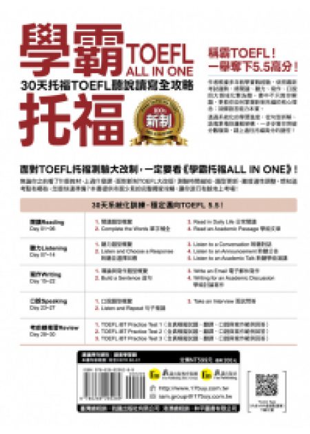 《學霸托福ALL IN ONE:30天托福TOEFL聽說讀寫全攻略》!