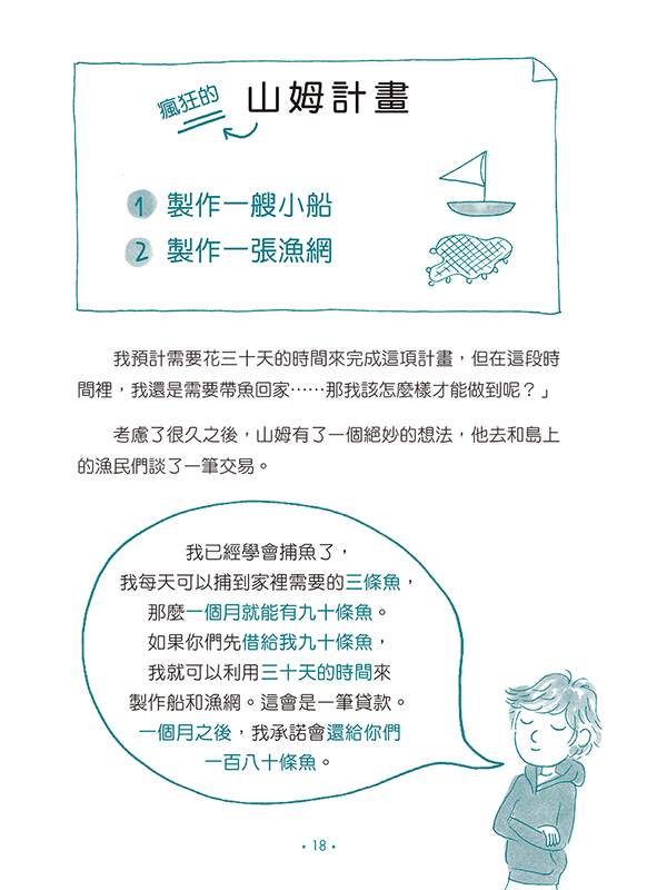 認識錢 ►錢是從樹上長出來的嗎?藉由山姆捕魚的故事和簡單易懂的圖文,建構對經濟生活的概念,並明白貨幣的價值。