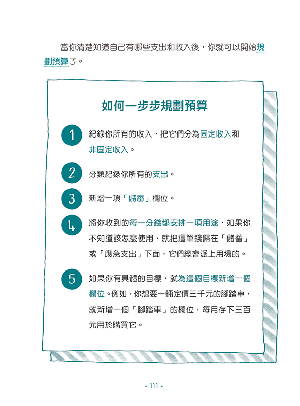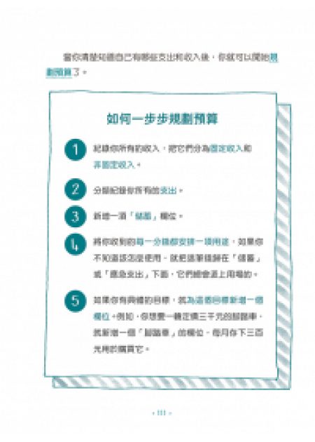 學存錢 ►思考儲蓄的意義,培養未雨綢繆的理財概念。練習建立自己的收支清單,一步步做好預算規劃。