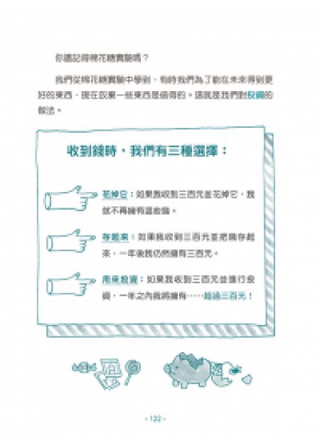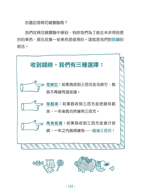 學花錢 ►透過「棉花糖實驗」學習自主選擇,懂得分辨價格與價值的差異,建立負責任的消費習慣。