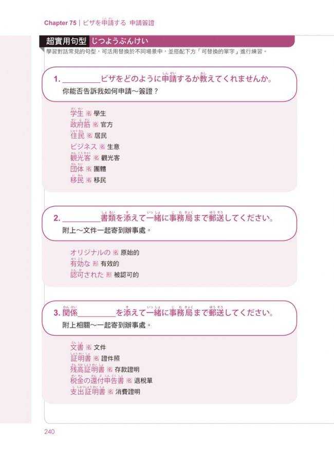 要學只學最精華的,全書內容依「生活篇」、「職場篇」、「旅遊篇」三大類,整理出一生中最常需要說日語的100個情境。