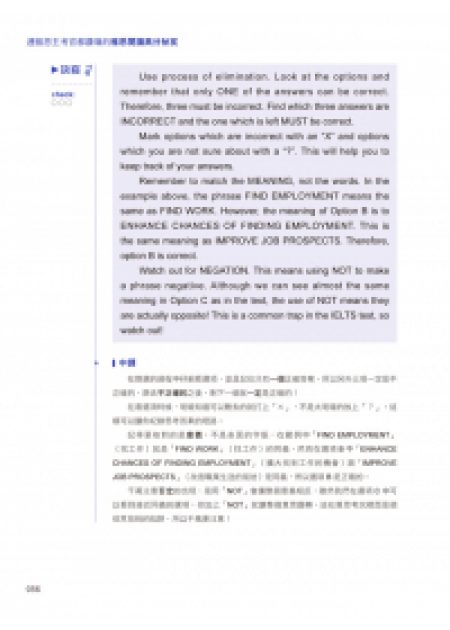 本書在編著過程中曾給二位「前雅思在台主考官」審閱過,連主考官都讚嘆只要照著本書的解題技巧按部就班地反覆練習,再加上以英文思維建構解題思維,不管遇到多艱澀的題目都可以輕鬆作答。